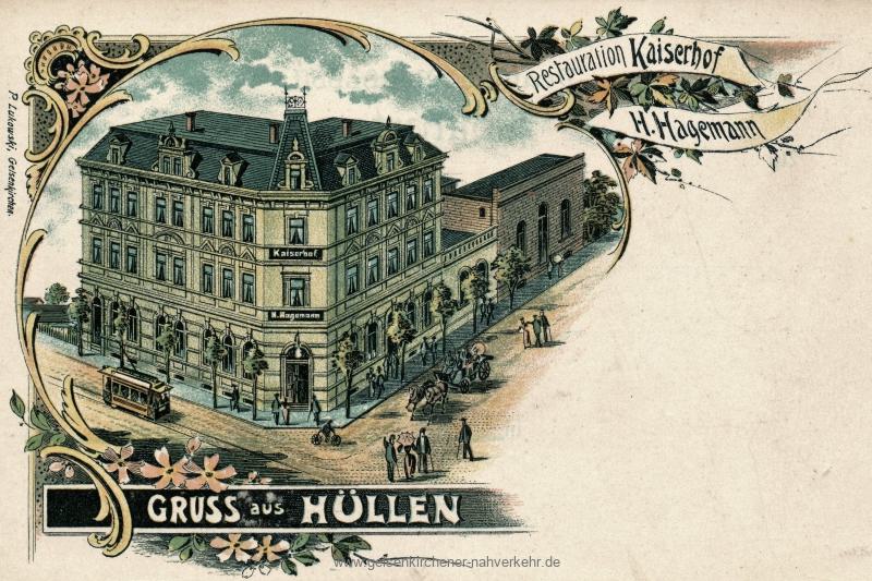 Die repräsentative und großzügige Anlage des Gebäudekomplexes dokumentiert die Aufbruchstimmung in Hüllen um die Jahrhundertwende. H. Hagemann, der das Restaurant im Erdgeschoss des „Kaiserhofs“ betrieb, verband mit dem Ausbau der Wanner Strasse und der Anlage der Straßenbahn die Hoffnung, seinen Gastronomiebetrieb gewinnbringend betreiben zu können.