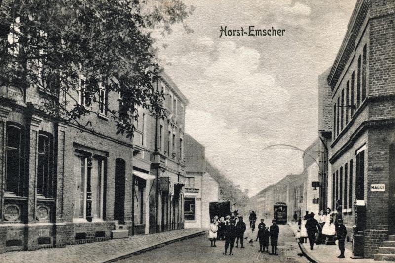 Das Beitragsbild zeigt die Endstelle der Gelsenkirchener Strassenbahnen in der Horster Hoch-Strasse auf einer im Jahr 1908 gelaufenen Postkarte (Verlag Heinrich Koch, Essen – Sammlung Ludwig Schönefeld). Der im Hintergrund sichtbare Straßenbahnwagen wartet in der Ausweiche auf die Abfahrt in Richtung Buer.